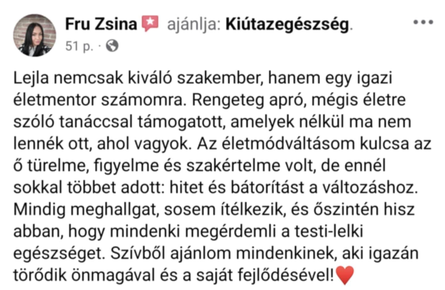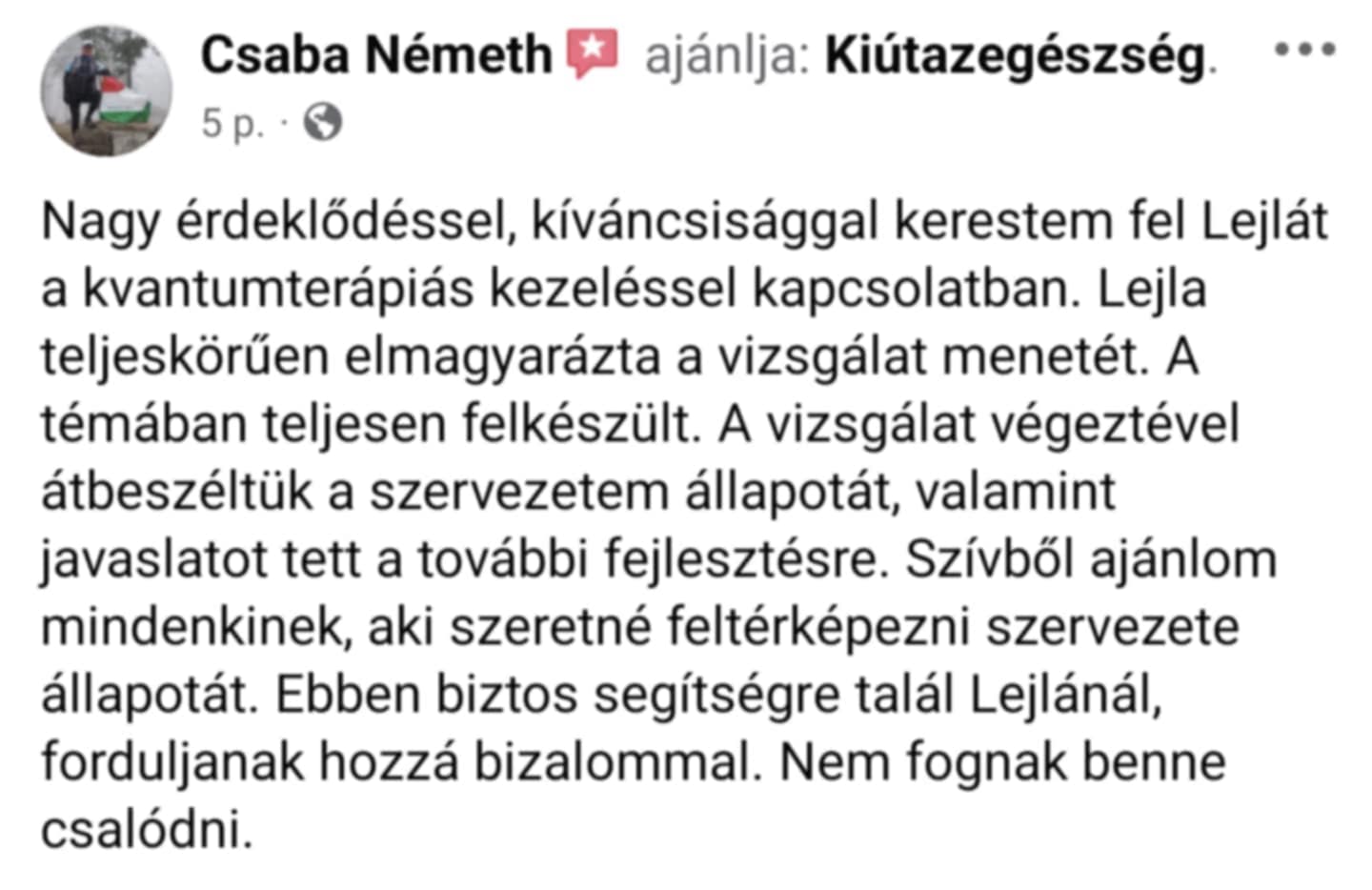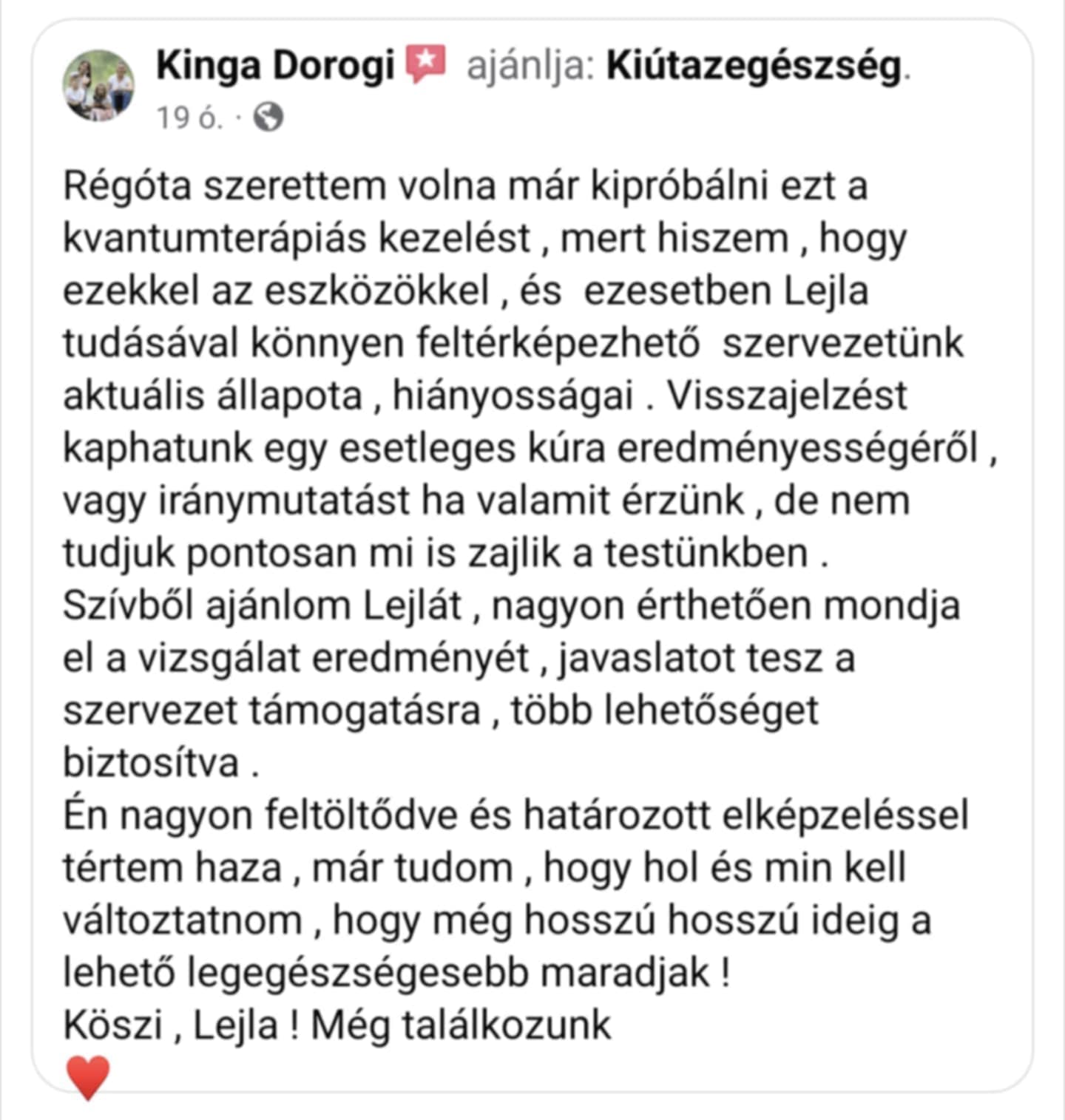 „Én is jártam Lejláéknál, kipróbáltam, cseppeket kaptam a feltárt állapotomra. Próbáljátok ki ti is, nagyon képzett Lejla.”